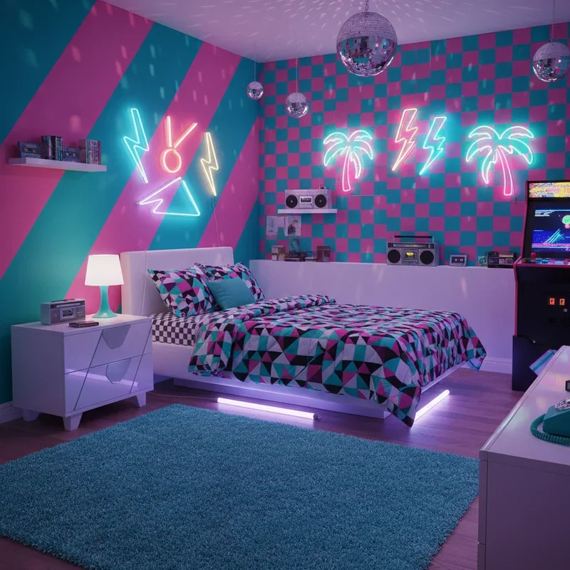Transform your space with 16 bold 80s bedroom ideas. Neon colors, geometric patterns, and retro vibes for the ultimate nostalgic makeover.