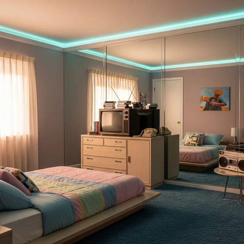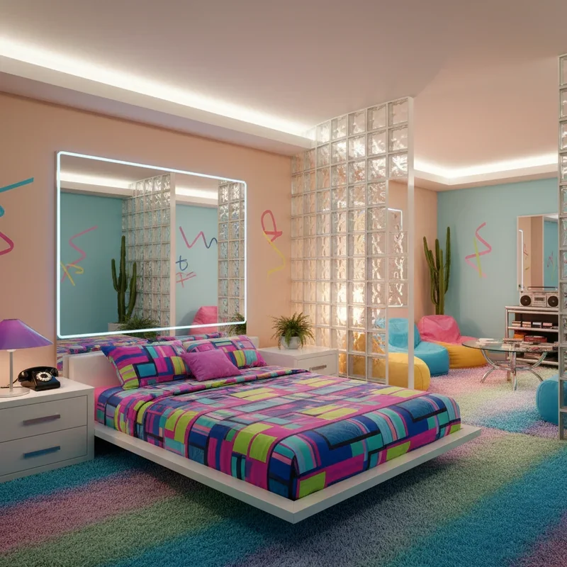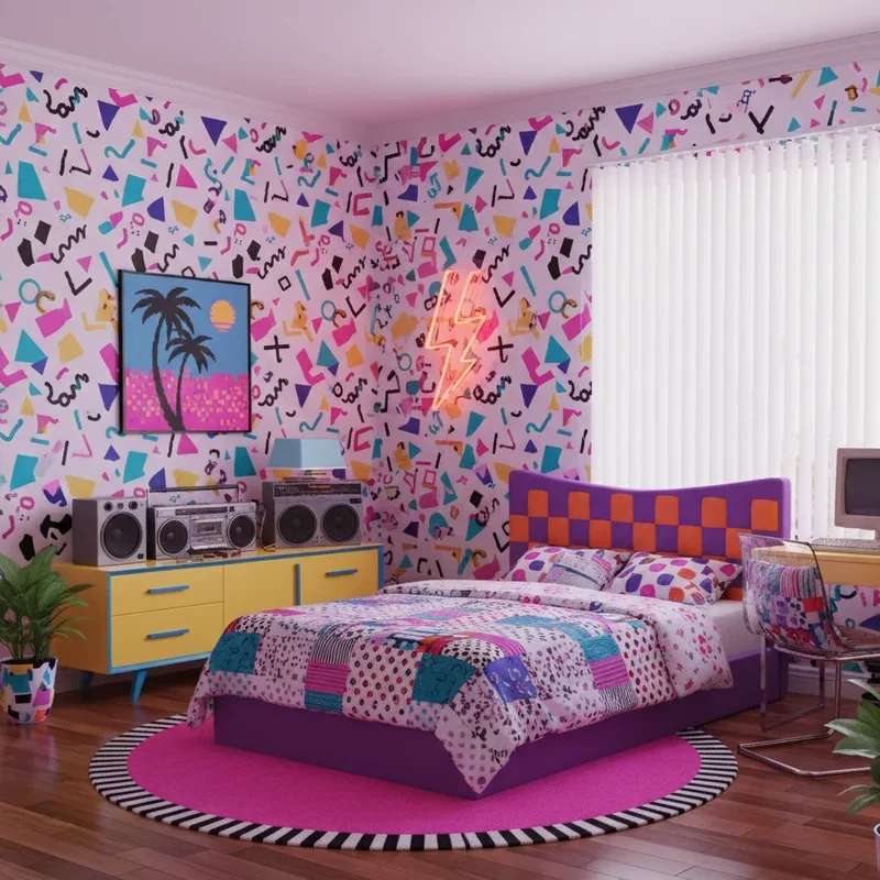 Remember when bedrooms were explosions of neon pink, electric blue, and geometric patterns that made your eyes dance? The 80s are calling, and they want to transform your sleeping space into a radical retro paradise! This iconic decade gave us more than just big hair and synthesizer music; it revolutionized interior design with bold choices that refused to apologize for being extra. Whether you lived through the era of Memphis design and Miami Vice or discovered its charm through Stranger Things, the 80s aesthetic offers endless inspiration for creating a bedroom that's both nostalgic and surprisingly fresh. From pastel geometric wallpaper to chrome fixtures that gleam like a DeLorean, these design elements bring personality and playfulness back into personal spaces. Ready to crank up the nostalgia and create a bedroom that would make Molly Ringwald jealous? Let's dive into the wonderfully wild world of 80s bedroom design!