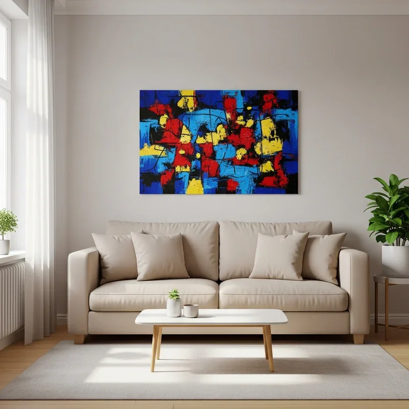 Transform the wall above your beige couch into a vibrant gallery that injects personality and color without overwhelming your neutral foundation. Large-scale abstract paintings in bold hues create dramatic focal points that draw the eye upward and make your ceiling feel higher. Choose artwork that includes at least one color you can echo in smaller doses throughout the room, creating cohesion without matchy-matchy syndrome. A triptych arrangement adds rhythm and movement, while a single oversized piece makes a confident statement. Don't limit yourself to paintings; consider textile art, macramé hangings, or mixed media pieces that add dimensional interest. The beauty of pairing colorful art with a beige couch lies in flexibility; swap artwork seasonally or when you crave change without replacing furniture. This approach lets you experiment with color trends through easily changeable art rather than permanent fixtures, keeping your room fresh and current.