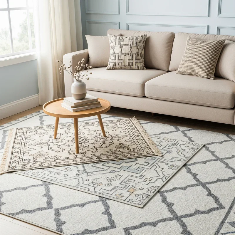 Ground your beige couch with a stunning area rug that adds pattern, color, and definition to your living room layout. Choose rugs with patterns that incorporate beige alongside bolder hues, creating a natural connection between your sofa and floor. Persian or Oriental rugs in jewel tones provide traditional elegance, while geometric patterns offer contemporary edge. The rug should be large enough to anchor all furniture legs or at least the front legs of your couch and chairs. Layer smaller rugs over larger neutral ones for added depth and interest, mixing patterns like florals with stripes if they share common colors. A patterned rug provides the perfect excuse to pull accent colors throughout the room, from throw pillows to artwork. This foundation piece can completely transform your room's personality, taking your beige couch from basic to breathtaking with one strategic purchase.