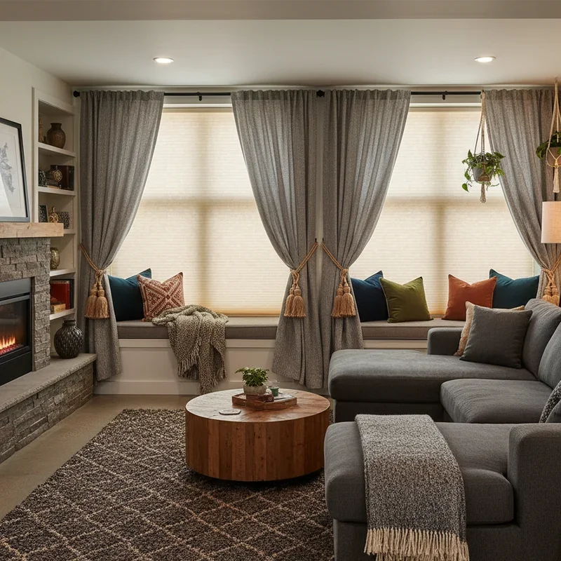 Layer your basement with soft textiles that invite touching and snuggling, creating that irresistible cozy factor! Drape throw blankets over every seating surface in complementary colors and varying textures. Mix chunky knits, soft fleece, and luxurious faux fur for visual and tactile interest. Add floor cushions and poufs for flexible seating that's always comfortable. Hang tapestries or fabric art on walls for warmth and sound absorption. Use textile room dividers to create intimate spaces within larger basements. Keep baskets filled with extra blankets for movie nights or unexpected chills. Choose washable fabrics that handle basement humidity without developing musty smells. The abundance of soft textures makes your basement feel like a giant, sophisticated fort. Everyone will instinctively want to curl up and stay awhile!