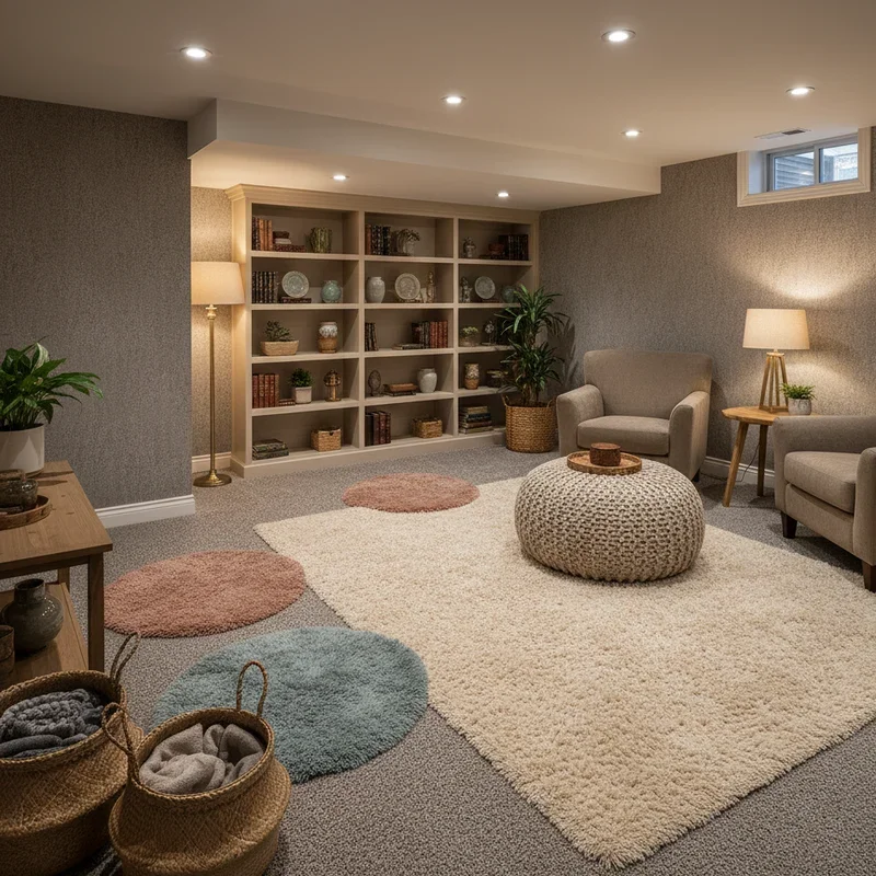 Nothing says "cozy" quite like soft textures beneath your feet, especially when dealing with typically cold basement floors! Wall-to-wall carpeting instantly warms up the space both literally and visually, creating that sound-dampening comfort perfect for relaxation. If full carpeting isn't in the budget, layer multiple area rugs to define different zones while adding warmth. Choose rugs with deep pile or shag textures that beg for barefoot walking. Patterns and colors in rugs can tie your entire design scheme together while hiding inevitable basement floor imperfections. Don't skimp on rug pads; they add extra cushioning and prevent slipping on smooth floors. Consider carpet tiles for DIY installation and easy replacement if moisture becomes an issue. Your basement floor should feel like walking on clouds, not concrete!