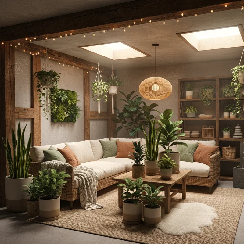 Bring life to your underground space with carefully chosen plants that thrive in low-light conditions! Snake plants, pothos, and ZZ plants handle basement conditions while adding essential greenery. Use plant stands and hanging planters to create vertical gardens that don't consume floor space. Add grow lights disguised as decorative fixtures to keep plants happy and healthy. Include natural elements like driftwood sculptures, stone accents, or water features for zen vibes. Preserved moss walls or artificial plants provide maintenance-free green without worry. Natural fiber baskets and wooden accessories continue the organic theme throughout. The combination of plants and natural materials counteracts that artificial basement feeling. Fresh air from plants literally improves your basement's atmosphere. Your underground space becomes a thriving oasis that connects you with nature!