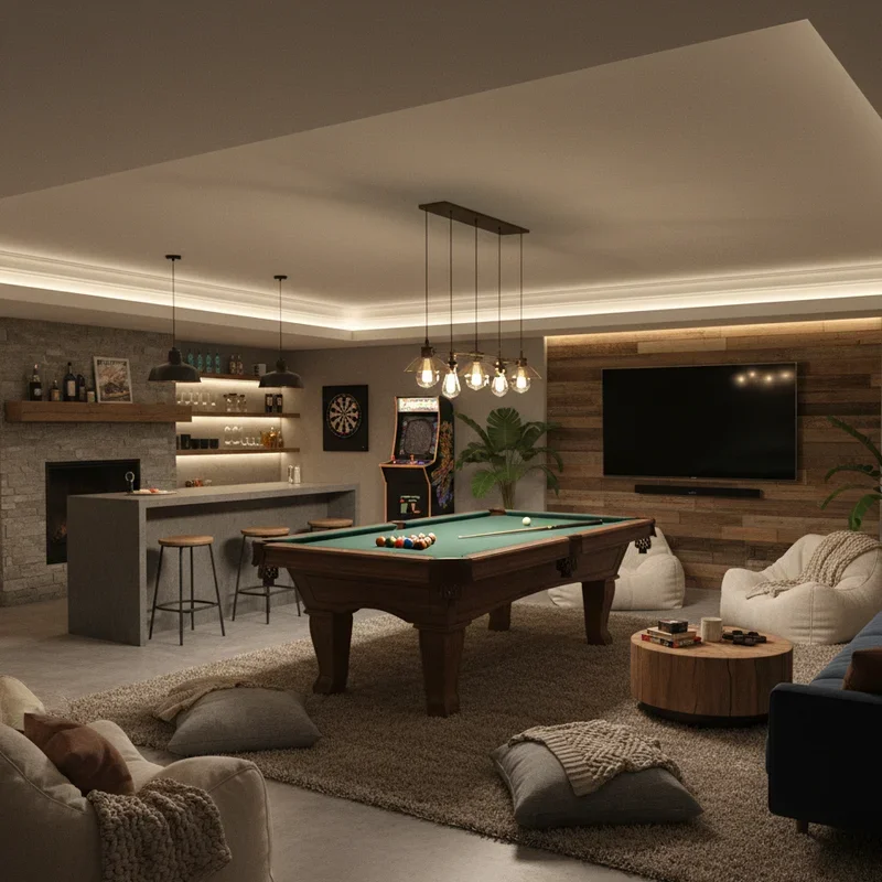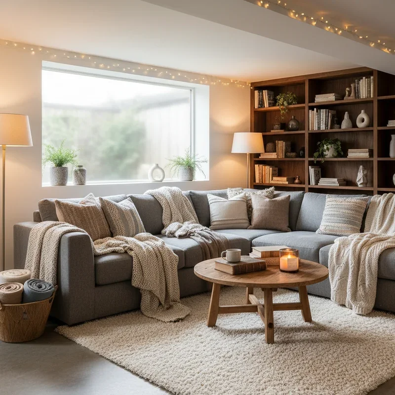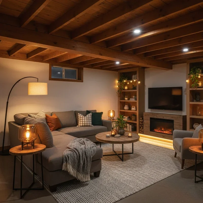 Basement lighting is like seasoning in cooking; without the right blend, everything falls flat! Since natural light is limited, you'll need to create magic with multiple light sources. Start with recessed ceiling lights for general illumination, but don't stop there. Add table lamps for task lighting, floor lamps in dark corners, and string lights for whimsy. Install dimmer switches on everything because harsh lighting kills cozy vibes faster than anything. Consider wall sconces that cast light upward, making ceilings appear higher while creating ambient glow. LED strips behind furniture or along baseboards add modern warmth without overwhelming the space. Candles and battery-operated flameless versions contribute to that hygge feeling everyone craves. The goal is to eliminate any harsh shadows while creating pockets of light that invite relaxation. Your basement should feel like perpetual golden hour!