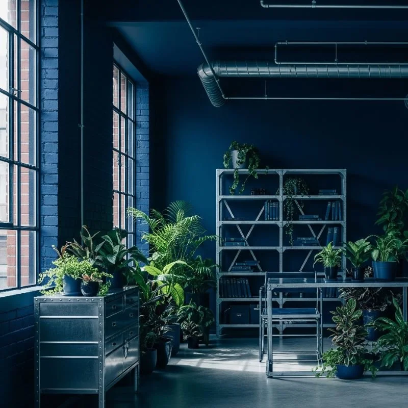 Incorporate steel blue elements that bridge the gap between industrial and sophisticated aesthetics while providing modern color that works with contemporary and traditional design approaches. Steel blue accents work like architectural elements, adding structure and visual weight while maintaining the calming properties that make blue so appealing in residential applications. Choose furniture, lighting, or architectural details in steel blue while considering how this cooler tone interacts with warmer elements in your room. The versatility of steel blue allows it to function as either a neutral or accent color depending on surrounding choices while providing sophisticated alternatives to standard gray or black industrial elements. Consider mixing different metal finishes that complement steel blue while adding texture and visual interest through varied materials and surface treatments. This approach creates spaces that feel both current and timeless while celebrating the honest beauty of industrial design adapted for comfortable home living.