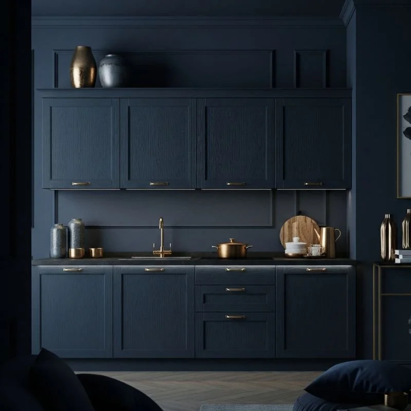2. Dark Blue Kitchen Cabinets for Timeless Elegance