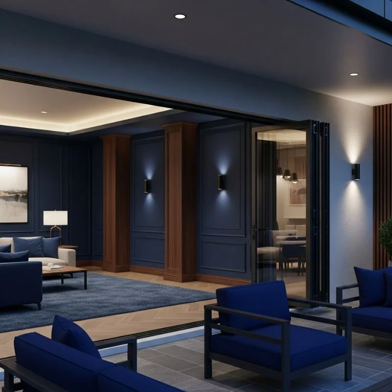 Extend sophisticated color choices to outdoor areas using navy blue furniture, accessories, or architectural elements that create cohesive design flow between indoor and outdoor living spaces. Navy outdoor spaces work like sophisticated extensions of interior design, providing elegant alternatives to standard neutral outdoor color schemes while maintaining durability against weather exposure. Choose weather-resistant materials in navy tones while considering how outdoor lighting affects color appearance during evening entertainment and seasonal changes. The sophistication of navy blue elevates outdoor furniture and accessories while providing rich color that complements natural greenery and seasonal flowers throughout changing landscapes. Consider how navy blue interacts with your home's exterior color scheme while maintaining visual connection to interior spaces through strategic color repetition and design elements. Add comfortable textiles and adequate lighting that support outdoor entertaining while maintaining the sophisticated aesthetic that makes navy blue such an appealing choice.