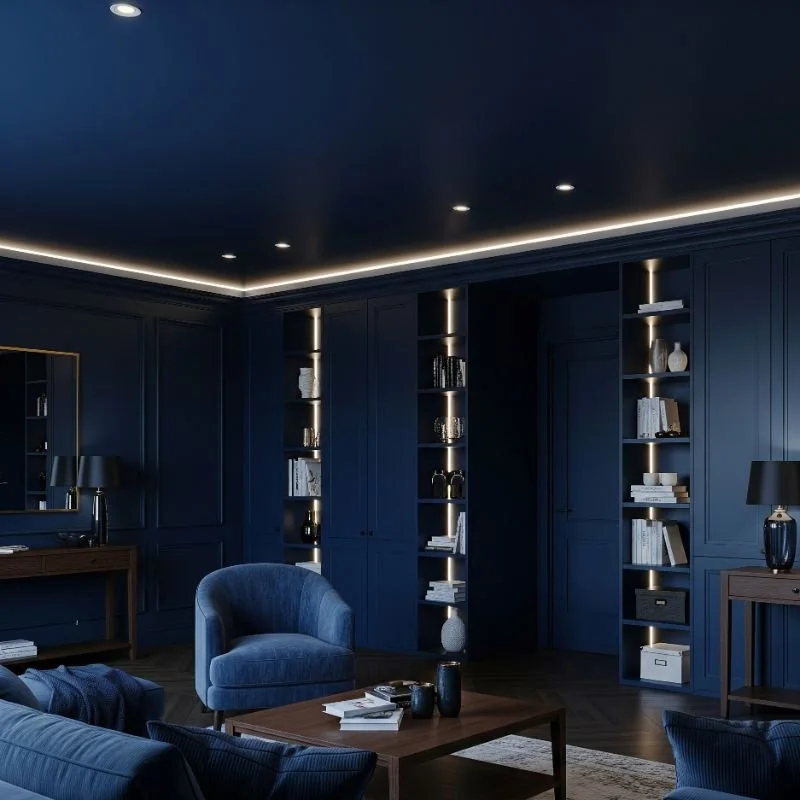 Transform your space with 20 stunning dark blue room ideas. Create sophisticated, stylish interiors that radiate timeless elegance and charm!
