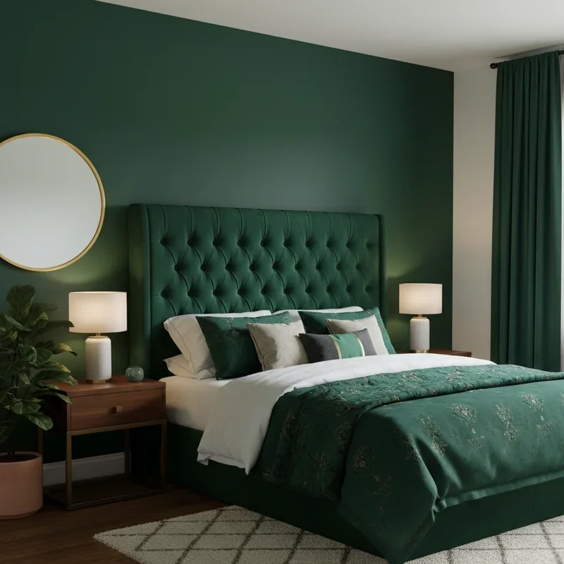 Transform your bedroom with 15 luxurious emerald green ideas. From velvet headboards to accent walls, discover modern sophistication today!