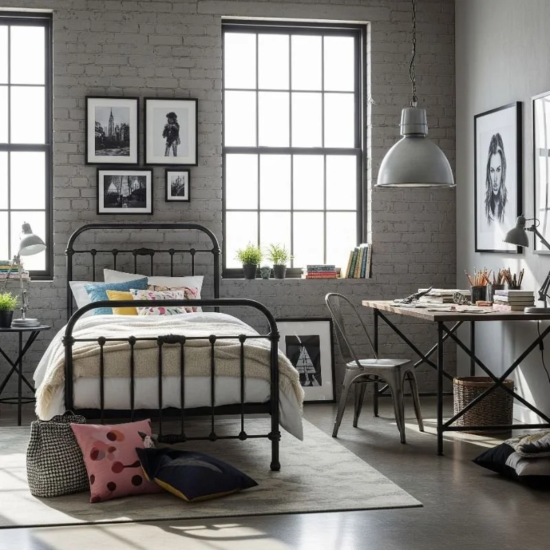 Break stereotypes with an industrial chic design that proves girls' rooms can be edgy and sophisticated. Expose elements like brick walls, concrete floors, or metal pipes for authentic industrial character. Soften hard edges with plush textiles in feminine colors like blush, lavender, or mint. Include metal furniture pieces like wire baskets, steel desks, or iron bed frames. Add warmth through Edison bulb lighting, wooden accents, and colorful artwork. Display collections in metal shelving units or vintage lockers for storage with personality. This unexpected style teaches that femininity comes in many forms while creating a unique space. The durable materials withstand active childhoods while the sophisticated aesthetic grows seamlessly into teenage years.