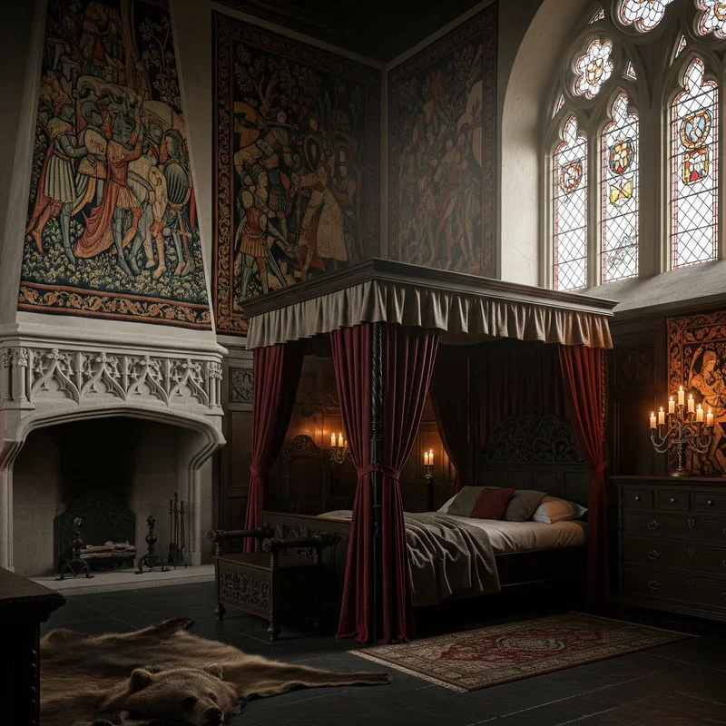 Transport your bedroom to medieval times with tapestries that add warmth, texture, and storytelling to your Gothic sanctuary. Choose designs featuring dark forests, mythical creatures, ancient castles, or mysterious celestial scenes that spark imagination. These textile artworks soften hard walls while providing insulation and sound dampening that makes your bedroom feel more intimate. Hang tapestries behind your bed as an alternative headboard, or use them to divide spaces in studio apartments Gothic-style. Modern tapestries featuring Gothic artwork or band imagery work just as well as historical reproductions if they maintain the dark, romantic aesthetic. The fabric's movement in slight breezes adds life to static walls, creating an ever-changing backdrop for your Gothic retreat. Tapestries prove that Gothic bedrooms can embrace softness without sacrificing their dark, dramatic character.