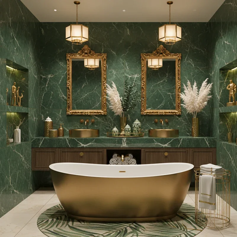 16 Green and Gold Bathroom Ideas for a Luxe Refresh