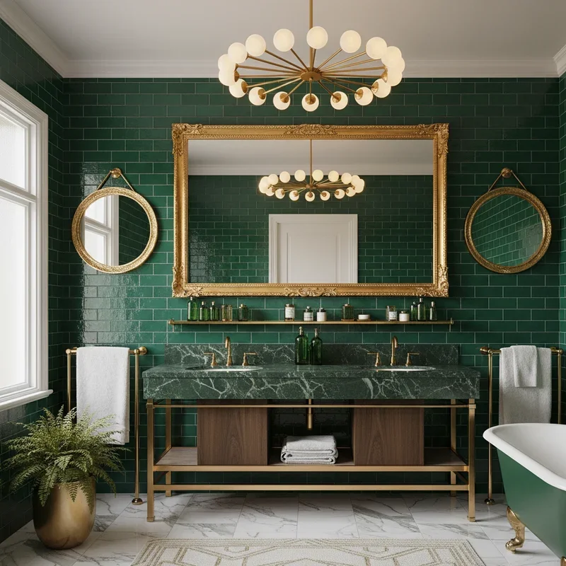 Green and gold bathrooms prove that luxury doesn't require complexity. These sixteen ideas show how two colors can create infinite possibilities for elegance and sophistication. From emerald tiles to gold fixtures, each element contributes to a space that feels both natural and opulent. Your bathroom becomes more than functional; it becomes a daily escape into luxury that never goes out of style.