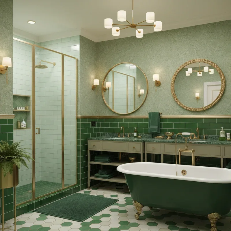 What happens when nature's most regal color meets the ultimate symbol of luxury? You get a bathroom that feels like it belongs in a palace garden. Green and gold together create magic that's both timeless and utterly on-trend. Think about it: emerald walls kissed by golden fixtures, sage tiles paired with brass accents, or forest green vanities topped with gold-veined marble. This color combination works like a perfectly mixed cocktail, each element enhancing the other's best qualities. Whether you're drawn to the deep drama of jewel tones or the soft sophistication of muted shades, green and gold offer endless possibilities for creating a bathroom that feels expensive, natural, and absolutely divine. Ready to discover how this power couple can transform your daily routines into luxurious rituals? Let's explore the golden possibilities that await!