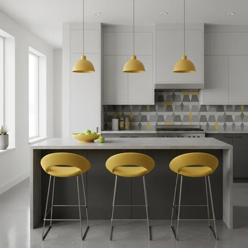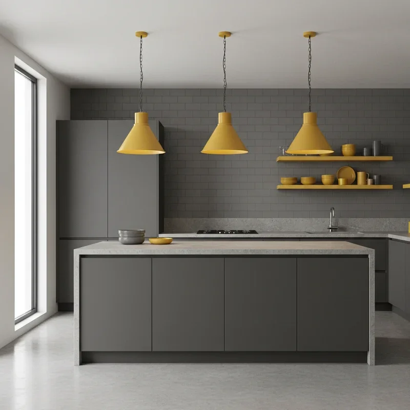 5. Yellow Pendant Lights Over Grey Surfaces