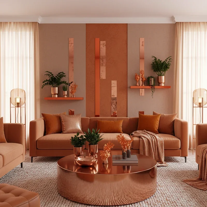 9. Copper and Orange Metallic Accents