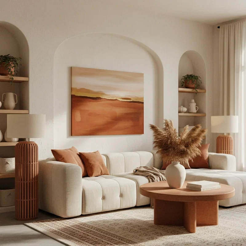 Embrace the Mediterranean warmth with a terracotta and cream palette that makes your living room feel like a Tuscan villa! This earthy combination brings natural elegance without the intensity of brighter oranges. Use terracotta on larger surfaces like walls or major furniture pieces, then balance with cream upholstery, curtains, and accessories. The duo creates a sophisticated backdrop that works with both modern and traditional furniture styles. Add texture through woven baskets, jute rugs, and linen throws to enhance the organic feel. This color scheme makes every season feel cozy; it's warming in winter yet breathable in summer. Natural materials like wood and stone complement these colors perfectly, creating a cohesive, grounded aesthetic. Your living room becomes a serene escape that feels expensive without the designer price tag. The best part? This timeless combination never goes out of style!
