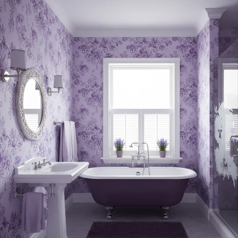 Embrace romance and whimsy with violet floral wallpaper that transforms your bathroom into a blooming garden! Modern wallpapers offer moisture-resistant options perfect for bathroom humidity, making this once-risky choice completely practical. Choose between bold, oversized blooms for drama or delicate vintage patterns for subtle charm. Wallpaper just one wall as an accent or go all-in for maximum impact. Purple florals on white backgrounds keep spaces bright while adding personality. Dark backgrounds with purple flowers create moody elegance perfect for powder rooms. Mix scales by pairing large floral wallpaper with small-pattern shower curtains or towels. Peel-and-stick options make this transformation renter-friendly and easily changeable. The organic shapes of flowers soften bathroom angles while purple petals add color without harshness. Your bathroom becomes a secret garden!