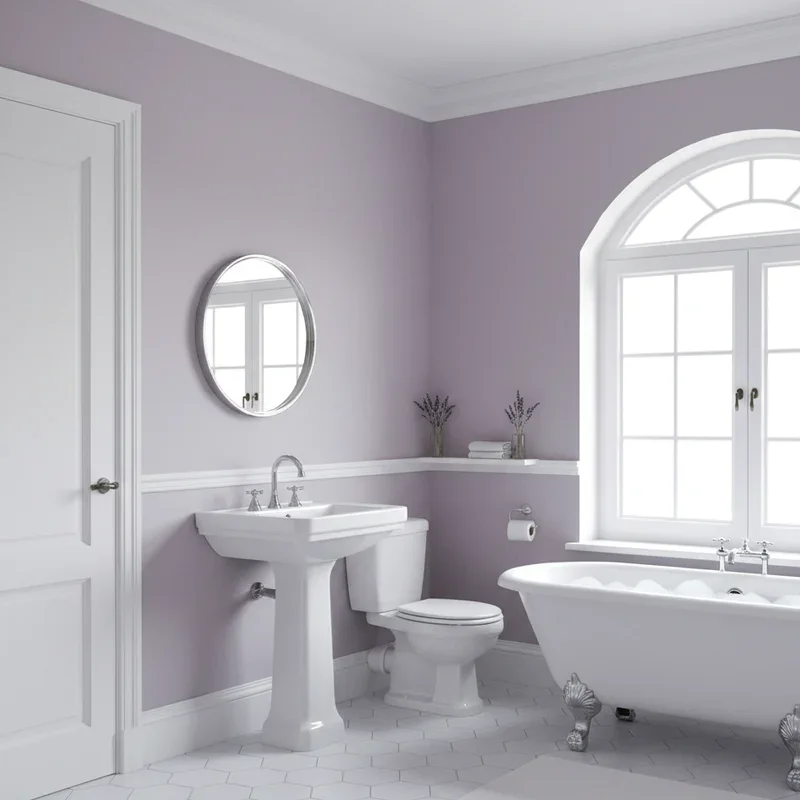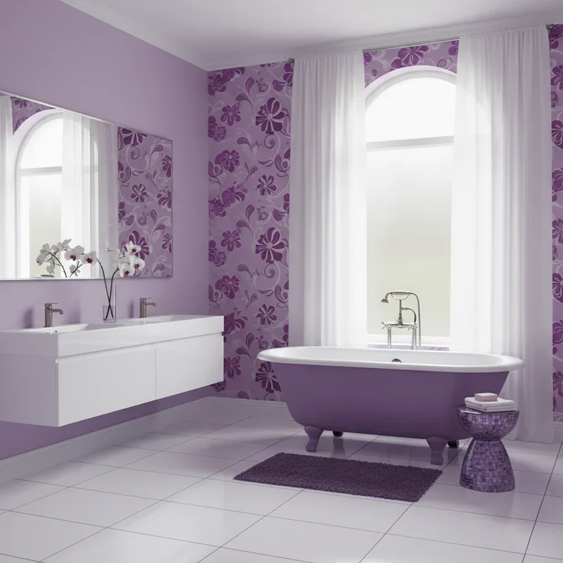A: Light lavender or lilac shades make small bathrooms feel larger and brighter than deep purples.