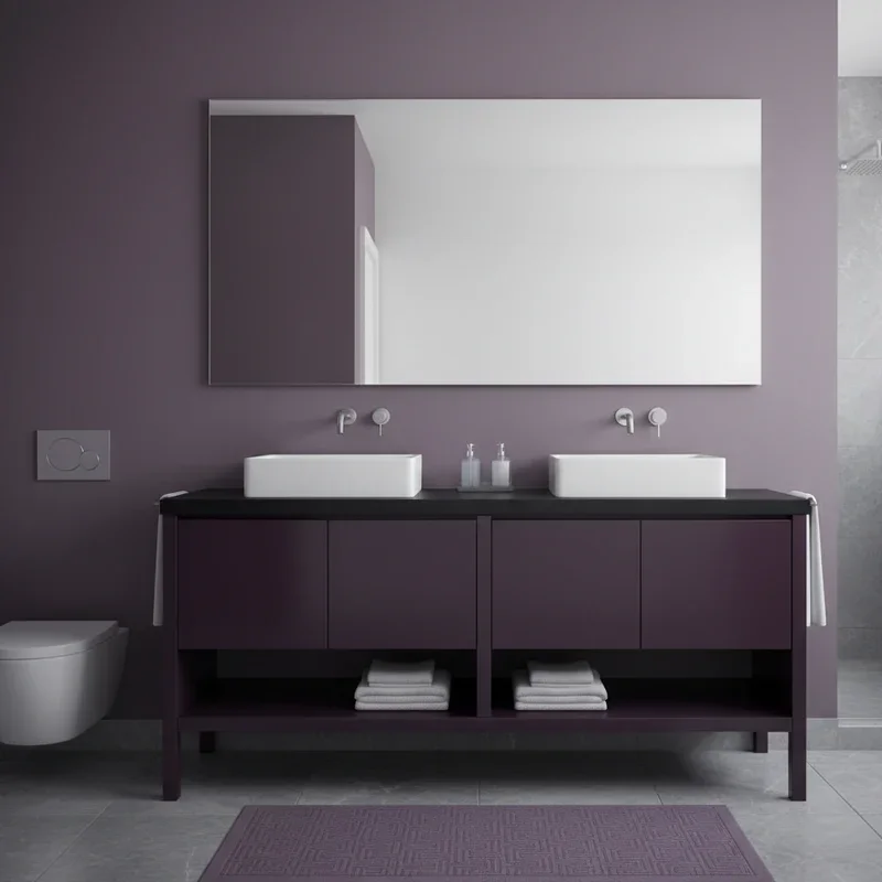 Your vanity is the workhorse of your bathroom, so why not make it a showpiece with rich eggplant purple? This deep, sophisticated shade transforms basic bathroom storage into a stunning focal point. Whether you're painting existing cabinets or investing in new ones, eggplant purple adds instant drama and elegance. The color pairs beautifully with white marble countertops, creating a high-contrast look that's both modern and timeless. Brass or copper hardware adds warmth and prevents the dark color from feeling too heavy. Consider a floating vanity in eggplant for a contemporary feel that makes floor cleaning easier. The deep purple hides water spots and fingerprints better than lighter colors, a practical bonus. Balance the bold vanity with lighter wall colors to prevent overwhelming the space. Your morning routine suddenly feels more luxurious!