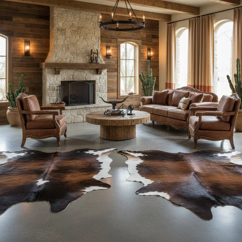 4. Cowhide Rugs on Polished Concrete Floors