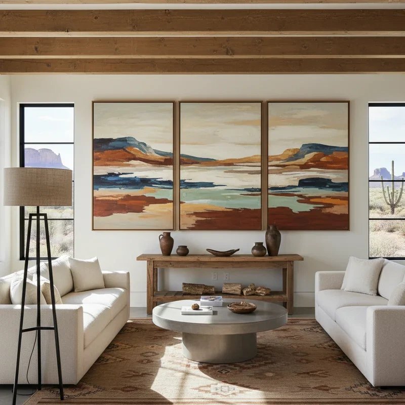 Your walls deserve more than predictable cowboy prints, don't you think? Contemporary artists are reimagining western landscapes through abstract interpretations, oversized photography, and mixed media pieces that capture the spirit without the cliché. Large-scale black and white photographs of desert vistas or mountain ranges printed on metal create dramatic focal points. Abstract paintings inspired by sunset colors over prairie lands bring warmth without literal representation. You might commission local artists to create custom pieces incorporating actual elements like barbed wire or weathered wood into modern compositions. Gallery walls mixing vintage ranch photography with contemporary geometric prints tell a more nuanced story. The key is selecting pieces that evoke the feeling of wide-open spaces and rugged beauty while maintaining sophisticated presentation through proper framing and lighting. This artistic approach elevates your western theme from kitschy to cultured.
