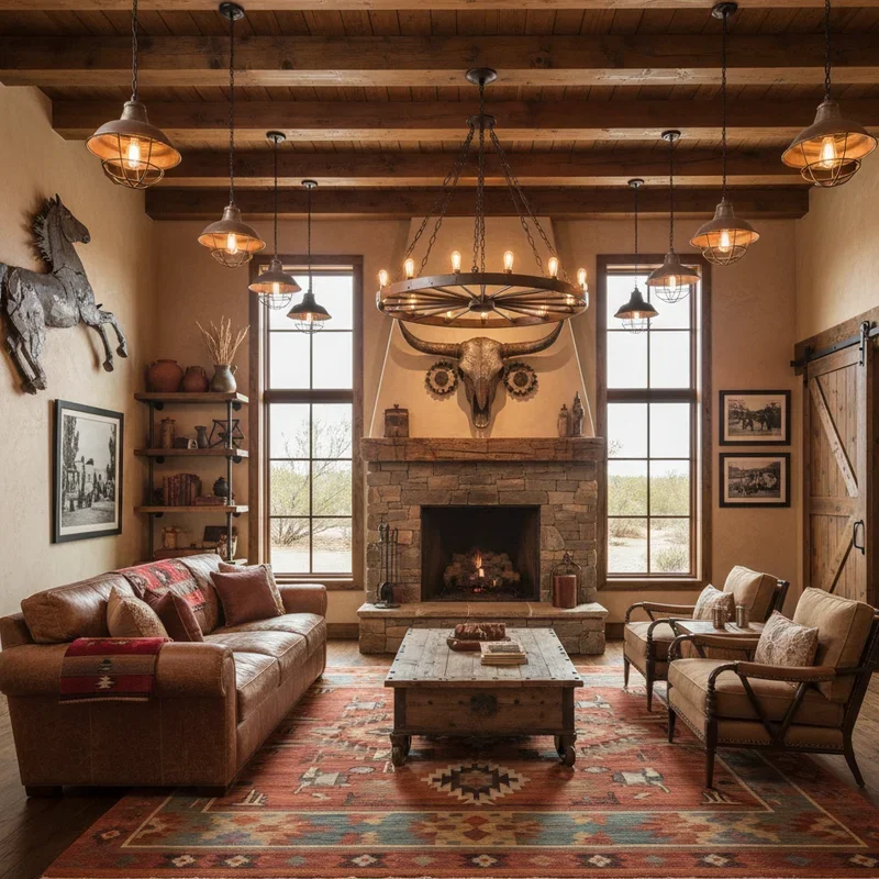 Lighting can make or break a room's ambiance, and when you're blending western with modern, it becomes your secret weapon. Imagine Edison bulb chandeliers crafted from repurposed wagon wheels hanging above a sleek dining table. Or consider black iron pendant lights reminiscent of old lanterns, but with clean, contemporary lines. The trick is finding fixtures that honor western heritage without looking like they belong in a theme park gift shop. Track lighting systems housed in rustic wood beams offer practical illumination while maintaining that ranch aesthetic. You might install modern recessed lighting throughout, then add statement pieces like antler chandeliers reimagined in metallic finishes. Wall sconces shaped like simplified horseshoes in matte black create subtle nods to western culture. This lighting strategy layers functionality with personality, ensuring your space feels both welcoming and sophisticated after sunset.