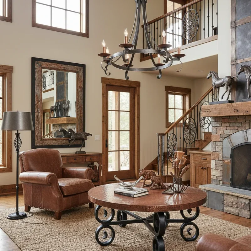 Why settle for one metal when you can have three working in perfect harmony? The modern western aesthetic thrives on mixing metals that each tell part of the story. Copper brings warmth and ages beautifully, developing that coveted patina reminiscent of old ranch equipment. Black iron provides strength and grounds the space with its industrial edge. Brushed steel adds contemporary sleekness that keeps things current. Picture a kitchen with copper pendant lights, black iron bar stools, and stainless steel appliances. Or visualize a bathroom where copper vessel sinks sit atop black iron vanities with brushed nickel fixtures. The trick is maintaining balance; use one metal as your dominant player, another as your supporting actor, and the third as an accent. This approach prevents your space from feeling like a hardware store display while creating layers of visual interest that reward closer inspection.