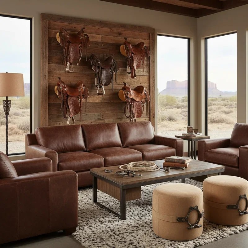 Remember when your grandmother's living room had that ancient leather armchair nobody dared sit in? Today's western-modern fusion takes leather seating to new heights of sophistication. Think streamlined sectionals in rich cognac leather paired with authentic saddle leather throw pillows or ottoman details. The magic happens when you mix textures: smooth Italian leather sofas adorned with tooled leather cushions featuring traditional western motifs. You're essentially creating a conversation between past and present, where comfort meets craftsmanship. Add a vintage saddle displayed on a minimalist console table, and you've struck gold. The leather develops a beautiful patina over time, making your furniture investment even more valuable as years pass. This combination works especially well in masculine spaces or family rooms where durability matters as much as style. Your guests won't just sit; they'll sink into luxury that tells a story.