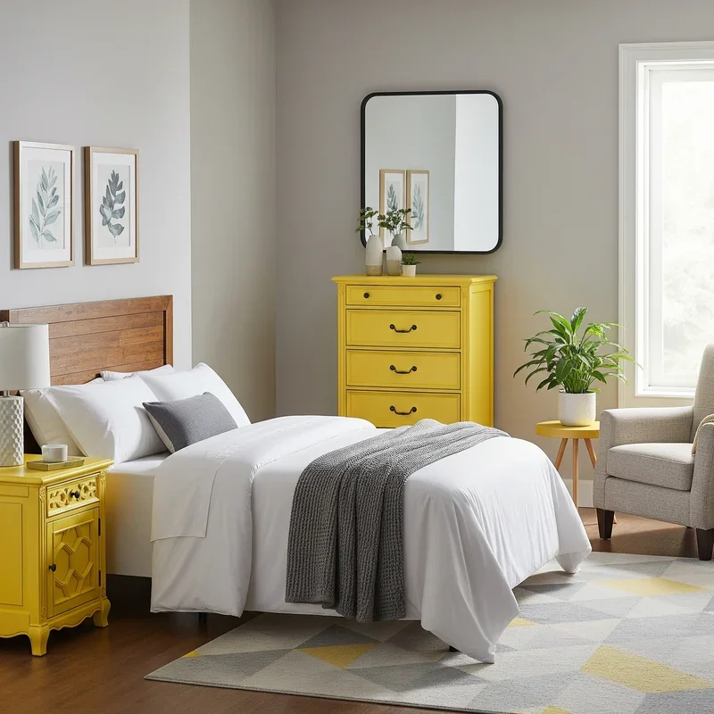 Transform ordinary furniture into extraordinary statement pieces with strategic yellow paint applications. That tired dresser becomes a cheerful focal point with a coat of sunshine yellow. A vintage nightstand painted in soft buttercup creates bedside charm without overwhelming the space. This approach allows you to introduce yellow gradually, testing your comfort level with the color. The beauty of painted furniture lies in its uniqueness; no two pieces look exactly alike. Consider painting just the drawer fronts or legs for a more subtle approach. Distressing painted pieces adds character and vintage appeal. Yellow furniture works particularly well against neutral walls, creating stunning contrast that draws the eye. Mix painted pieces with natural wood furniture to maintain balance and prevent the space from feeling too themed or childish.