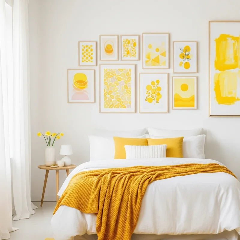 Why commit to yellow walls when artwork offers flexibility and personality? Incorporating yellow through carefully chosen pieces allows you to control exactly how much sunshine enters your space. A large abstract painting with yellow elements becomes a focal point above your bed. Gallery walls featuring yellow-dominant prints create visual interest without permanent commitment. This approach lets you mix different shades and styles of yellow, from pastel watercolors to bold geometric designs. Artwork also introduces texture and dimension that flat paint can't achieve. Consider rotating seasonal pieces to keep your space feeling fresh. Yellow photography prints of sunflowers, lemons, or sunny landscapes bring nature indoors. The beauty of using artwork lies in its ability to tell your story while adding color. Frame selection matters too; gold frames enhance warmth while black creates striking contrast.